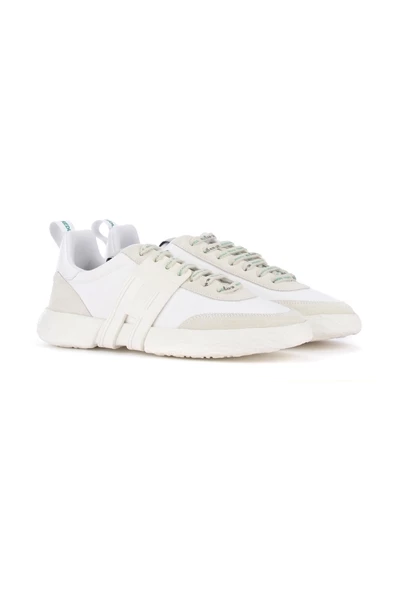 Hogan -3R sneaker in wit canvas. Suede inserts. Gereconstrueerd lederen bovenste gewatteerde Airtex 5 mm Voetbed 2,8 cm Extralight Eva Sole gemaakt in Italië