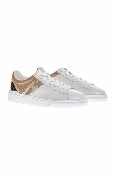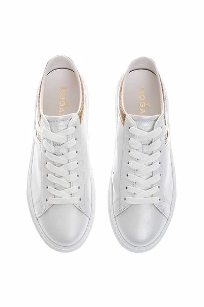 Collectie Schoenen Vrouwen Sneakers wit Cassetta Hogan met H en panelen spiegeleffect inserts en gouden glitter. De schoen is niet gevoerd met ventilatieopeningen aan de binnenzijde. Van schaats is Uitgevoerd in Een blanco gom.