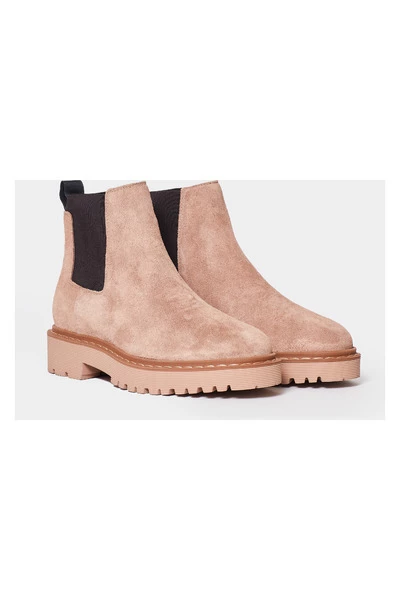 Hogan enkellaars met kant rubberen bands. Gemaakt in zacht beige suède met binnenzool in het geheugenschuim. Comfortabele pasvorm. Ultra-Light Rubberen enige totale hoogte 5 cm.