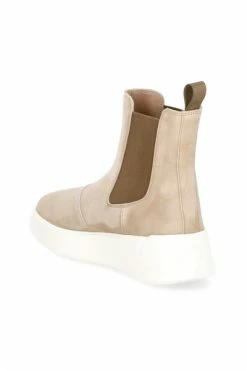 Hogan Boots Brown – Brown Hogan Suede Leather Chelsea Boots For Woman – Round Toe – Tech Fabric Inserts at Ankle – Gros Grain Detail bij Upper Heel – Interne traagschuim Fussbet – verhoogde rubberzol (4 cm)