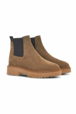 Enkelschoen gemaakt van suede met zijkantelastische banden voor een gemakkelijke fit en rubberen tankzool. Memory Foam Insool.