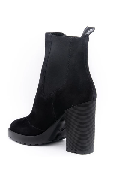 Zwart leer H623 Chelsea -laarzen van Hogan Featurgrubber buitenzool, traagschuimbelang, suède bovenste en H monogram -pull.