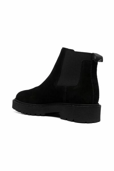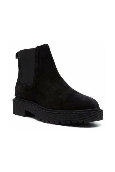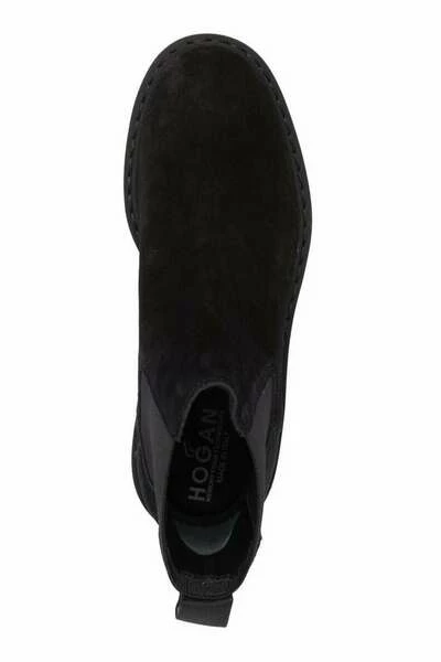 Hogan Boots Black Black Leather/Suede Chelsea Panramed enkelschoenen van Hogan met elastische zijpanelen, pull-tab aan de hiel, rond teen, pull-on stijl, enkellengte en geribbelde rubberzol.