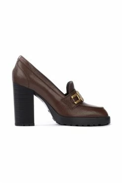 Hogan H623 hakken mocassin in bruin leer. Lederen bovenste traagschuim Insool Rubberen Zolige totale hielhoogte 11 cm platform 2,5 cm gemaakt in Italië