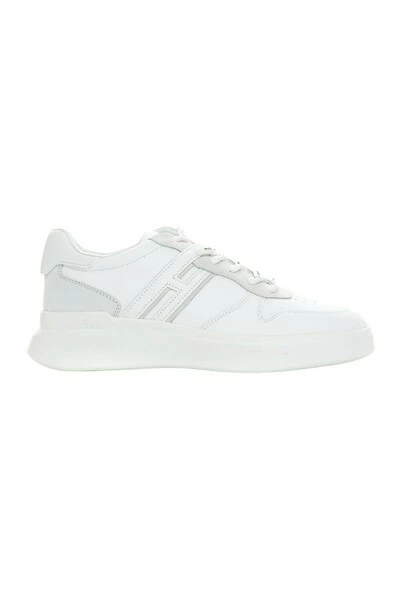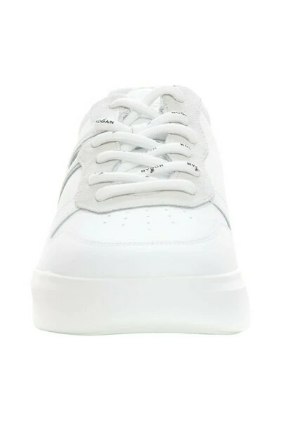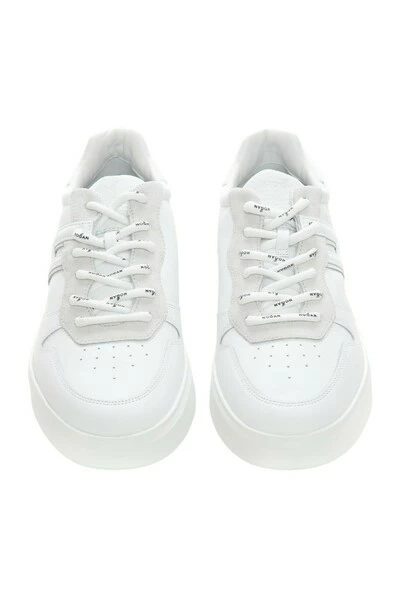 Hogan Essential Leather sneakers with laces in white color, basketball model, lace with logo, side logo, non-slip rubber sole, composition: 100% leather, brand: HOGAN.