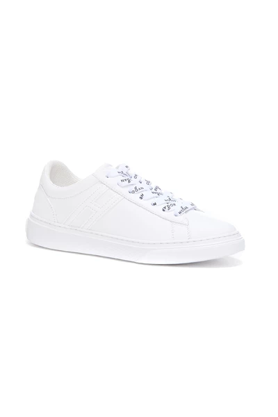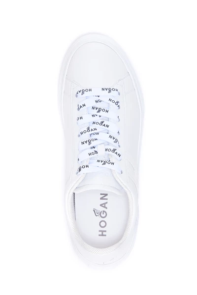 Witte sneakers met veters en ton-sur-ton logo aan de zijkant. Afmetingen: Hoogte: 3,5 cm Materiaal: Bovenwerk: Leer, Buitenzool: Rubber Productstijl-ID: HXW3650J970QZBB001 Deze beschrijving is automatisch vertaald.