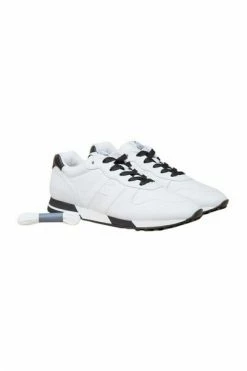 Collection herenschoenen witte sneakers – H383 – Hogan voor mannen met uitsparingen, Black Buttress en H aangebracht in grote graan. Je vindt 2 paar veters: een zwart paar en een paar van je reserve. De zool is gemaakt van witte en zwarte kauwgom. Dit product is in het VK -grootte.
