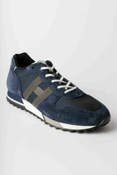Blauwe sneakers met grosgrain zijletter H. Gemaakt in Italië.