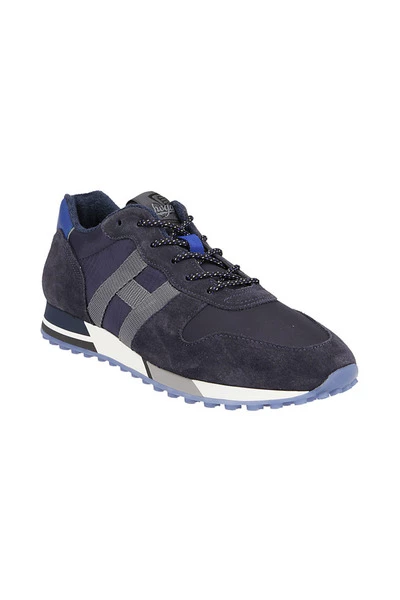 H383 sneakers van Hogan. Geïnspireerd op de stijlelementen van de jaren 1970 Track and Field. Lichte en performante schoenen in suède met inzetstukken in hightechstof en contrasterende driekleurige zool. Versierd met H op de zijkanten, details in glad leer en blauwe veters. Inclusief stofzak met merknaam.