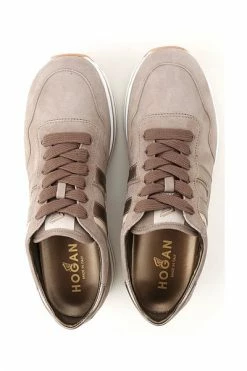 Leren sneakers H483 van Hogan met suède inzetstukken, gelamineerd logo H op de zijkant en gestreepte rubberen zool.