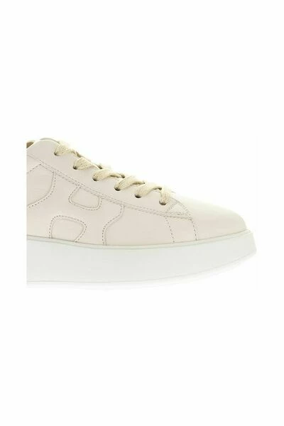Het iconische Hogan Rebel Design heeft opnieuw geïnterpreteerd in ontwerp en volumes en beschikt over een extra lichte zool met groeven aan de achterkant. Dit model met zijn zachte en essentiële lijnen heeft een NAPPA -leerwerk met een golvende H aan de zijkant. Het traagschuimvoetbed zorgt voor een gedempte pasvorm.