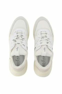 Hiel: 5,5 cm. Platform: letter H gesneden aan de zijkant. Kleur: Blanc – B001 (Bianco)+M209 (zoet) Hoofdmateriaal: stof en leer. Sole: Rubber. Voering: leer. Sluiting: topvetjes. Toe vorm: rond. Fit: True to Size – Grootte: Europees.