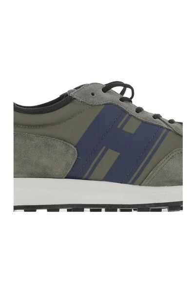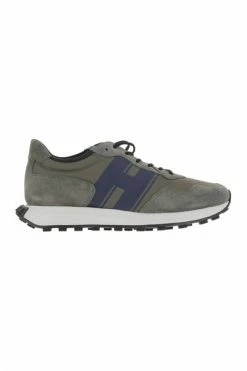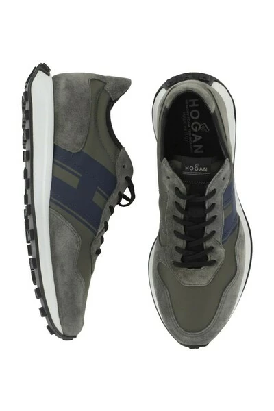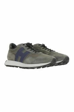 H601 sneakers met suede bovenste technische stof inzetstukken zijdescherm gedrukt h op het zijgeheugen Schuim Insool Lichtgewicht Rubber buitenzool (EVA, TPU) met H Ses Gray, blauw gemaakt in Italië Samenstelling: suede en stof