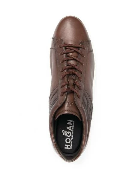 Hogan Rebel sneakers hebben leren bovenwerk, rubberen zool en het merklogo aan de zijkant.