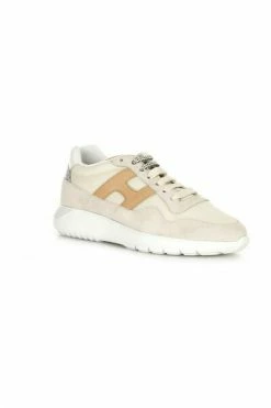 Hogan Interactive 3 Sneakers zijn voorzien van leer en suede bovenste, rubberen zool en het merklogo aan de zijkant. Grijze vervangende veters.