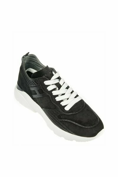 COD. HXW3850BM40FFY0353 Hogan Sneakers Actief één Zwarte Kleur: Zwart Toepassing Logo Glitter Black Tie Stang in JAQUARD LOGERIDED BLACK LADS LEFTEERDE RUBBELE SLEUKEN SNEAKERS