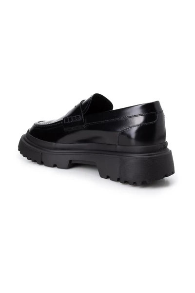 Hogan platte schoenen zwart bovenwerk in schurende leer, vamp, zichtbare stiksels, traagschuim voetbed, eva zool