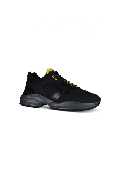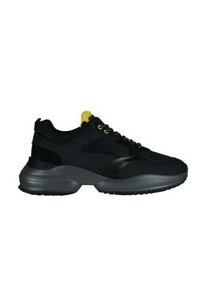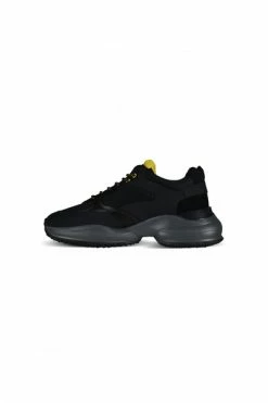 Zwart met gele Interaction sneakers van Hogan. Sneakers van stof en leer. Binnenzool van schuim. Grijze rubberen zool. Logo op de voorkant van de tong. Vetersluiting. Materiaal: stof en leer Productstijl-ID: HXM5450DH10OO62774