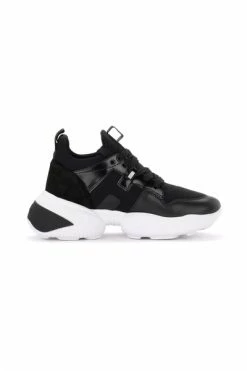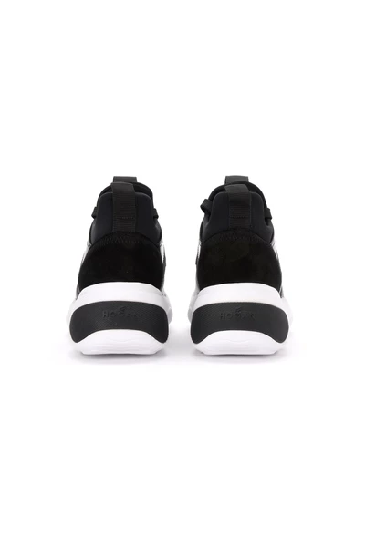 Zwart lederen Interaction sneakers van Hogan met een ronde neus, een grove oversized zool en suède details. H-logo op de zijkant en een logolipje op de tong.