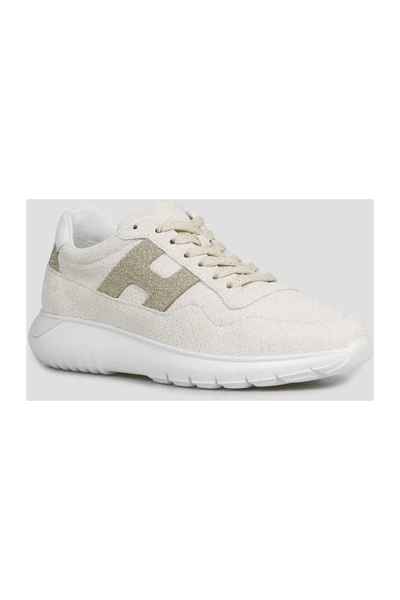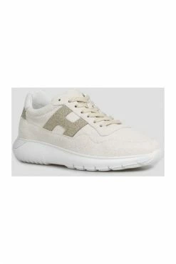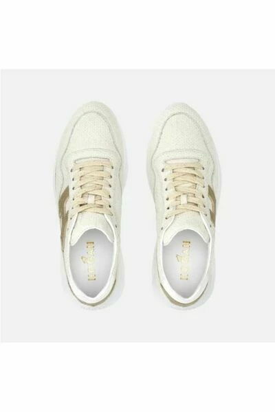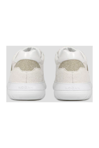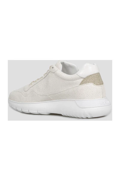 Sneakers met een bovenwerk van pythonleer, contrasterende logoletters opzij, ronde neus, vetersluiting aan de voorkant, merkzool en dikke rubberen zool.