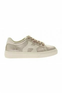Collezione Primi Passi, J340-trainers in leer met golvende en gelamineerde zijde H, perfect om je kleine meisjes in absoluut comfort te begeleiden.