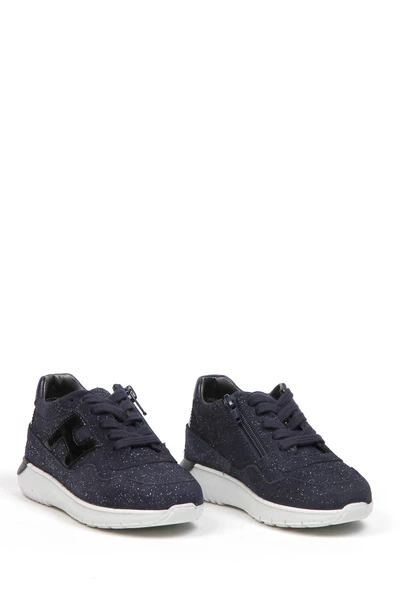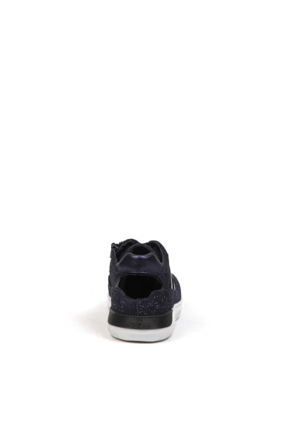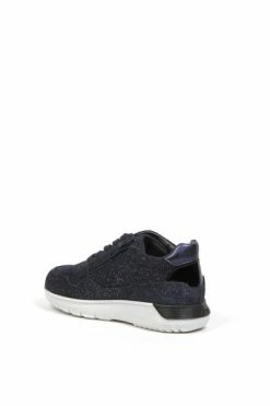 Sneaker – Upper stof en leer met micropailletes Blue – White rubberen zool – side streep met logo Blue