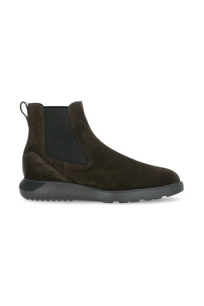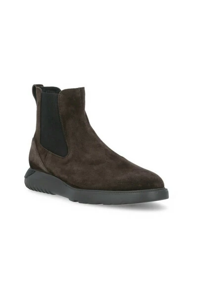 Hogan Boots Brown – Brown Hogan Suede Leather Chelsea Boots For Man – Round Toe – Side Elastic Inserts – Therapy Foam Technology Fussbett – Eva Super Light Sole