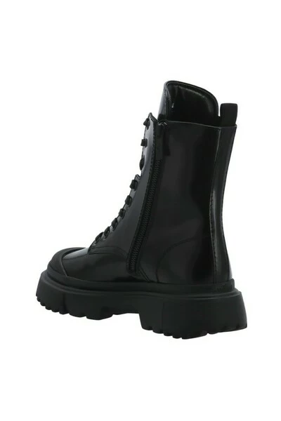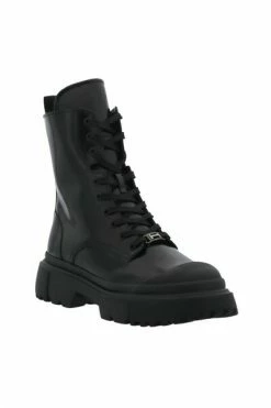 Hogan Boots Black – Black Hogan lederen laars voor vrouw – ronde teen – schurende lederen bovenwerk – Metal