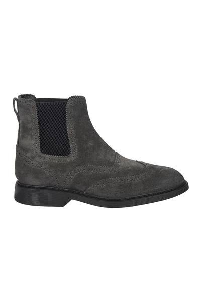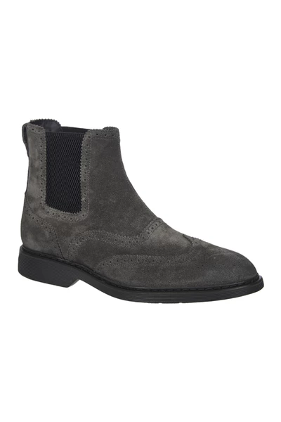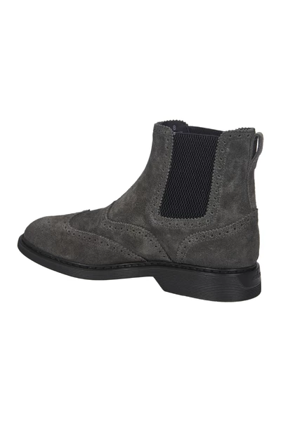Grijze Chelsea -laarzen met zwaluwstaartgaten, zijelastische inzetstukken, traagschuimvoetbed en rubberen zool. Fabric Case Inclusief.comPosition: suede, textielvezel.Sole: Rubber.Made in Italië.