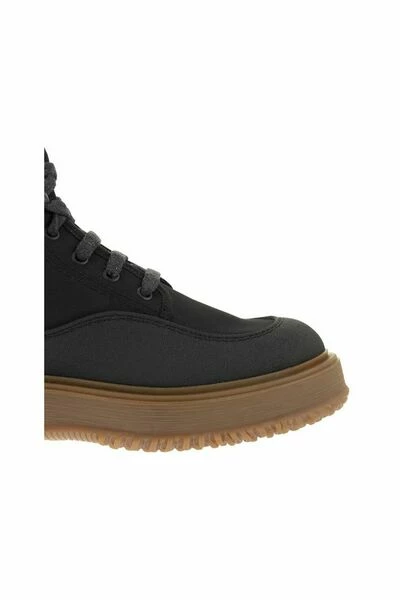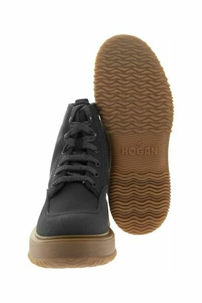 Recycle – hergebruik – verminderen. Het historische traditionele model, de eerste creatie van het merk in 1986, wordt vernieuwd met een eigentijdse aanpak gericht op milieuduurzaamheid. De rubberen zool, die gerecyclede materialen omvat, neemt grotere volumes aan die geen licht in gevaar brengen. De traditionele lijnen van de bovenkant worden benadrukt door het elegante monochroom van de technische stof, ook het resultaat van een proces met gerecyclede vezels. Met een look die zowel verfijnd als gruizig is, wordt de niet -traditionele hier voorgesteld in een winter enkelschoenversie. Verrijkt met buiten geïnspireerde haken en verwarmd door een nepbont voering, is het de nieuwe stedelijke must-have.- Hogan niet-traditioneel