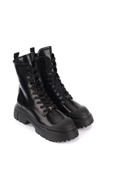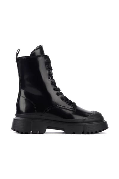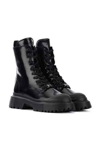 Amphibian Hogan H619 zwart leer. Sluiting met veters en zijkant interne plaat in traagschuim rubberen zool