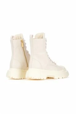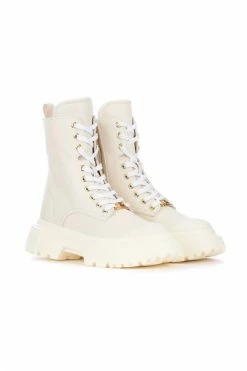 Amphibian Hogan H619 in ivoor -gecoleerd leer. Sluiting met veters en zijkantslogo en vergulde metalen details rubberen versterking op de binnenbelang in geheugenschuim gemaakt in Italië