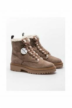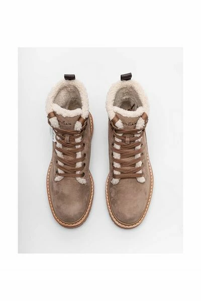 Collectie Dameslaarzen Beige Laarzen – Route – De Hogan voor vrouwen met lederen draaien rondom, maak nubuck en volledig ingevuld in schapen. De ingekeerde zool is in kauwgom en gemeten 2,5 cm.