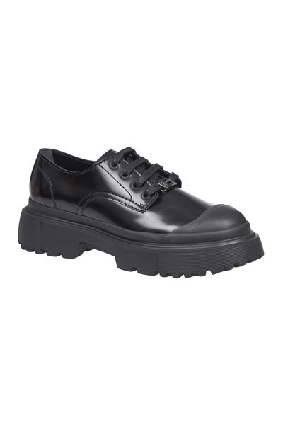 Zwarte veter. Zichtbare stiksels. Interne traagschuim binnenzool. Totale hoogte: 5 cm. Samenstelling: 100% leer. Gemaakt in Italië.
