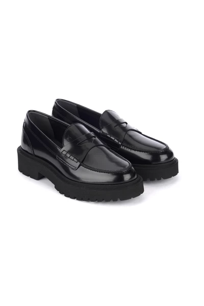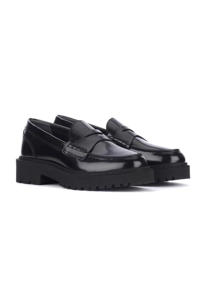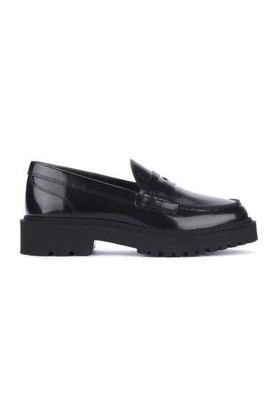 Hogan Moccasin Hogan Model H543 in zwart glanzend leer. Hoogte 5 cm gemaakt in Italië
