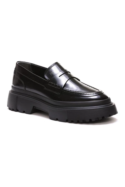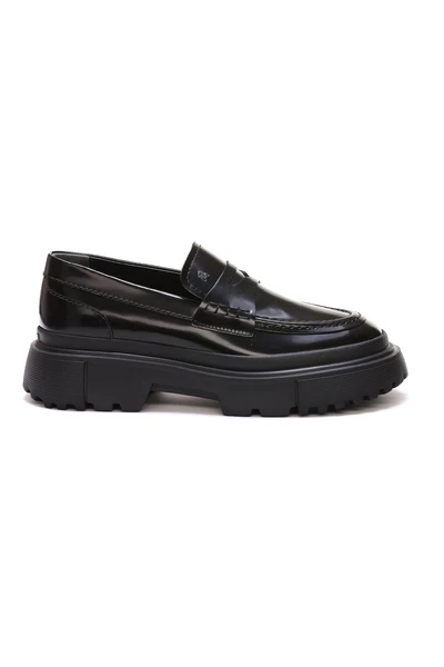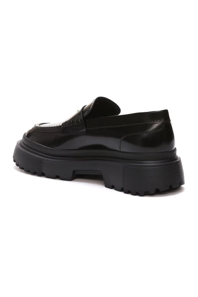 Hogan platte schoenen zwarte vrouw loafers, rond teen, glijden aan