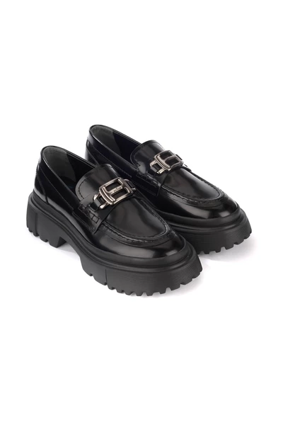 Hogan H629 mocassin in zwart leer. Lederen bovenste traagschuim Insool Maxi rubberen zool gemaakt in Italië