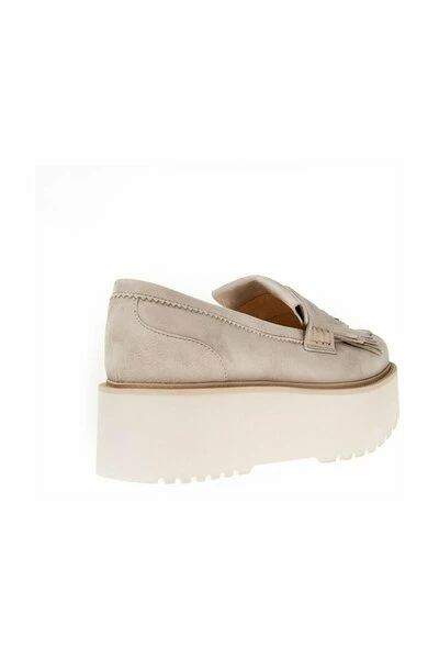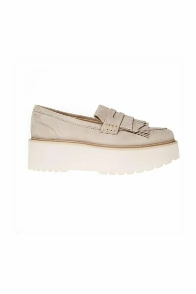 Kabeljauw. HXW3550AF10CR0M024 Route H355 Beige mocassin met franjes Art. HXW3550AF10CR0M024 Route H355 Verzend de mocasino met masker, franjes, blootgestelde stiksels en maxi ultralight rubberzol. Klassieke glamour. Route H355 Moccasin Hogan Woman Made in Italy Upper Tomaia Tomaia Mask franjes Zichtbare stiksel Maxi Ultralight Rubber Sole Max 5 cm indicaties van zorg en onderhoud inclusief stoffen behuizing inbegrepen