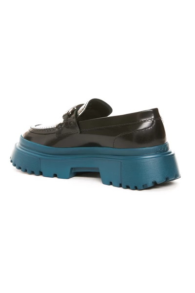 Hogan Black Woman Loafers, Round Teen, Glip On, Chain Detail