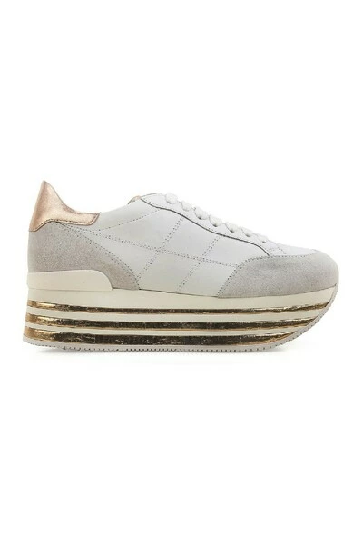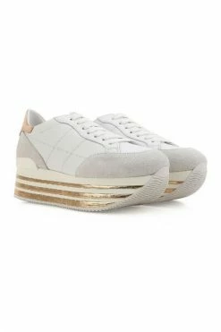 Hogan Low Top Wedges Sneakers Shoes In Leather White
