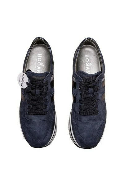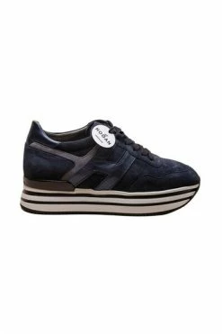 Verzamelingsschoenen Women Marineblauwe sneakers – Midi – Hogan voor vrouwen met de emblematische H aangebracht aan de zijkant in blauwe en metalen grijze kleur. De dubbele zool is in gum en 6 cm meting.