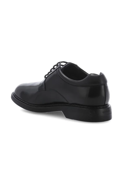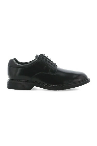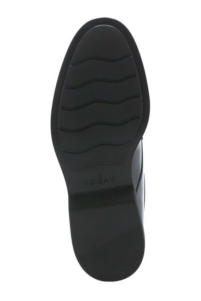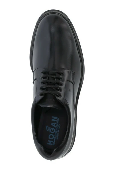 Hogan Flat Shoes Black – Black Hogan Glad leren Lage schoenen voor man – Derby Bevestiging met snaren – Zijkant in reliëf Hogan Monogram – Zichtbare bovenste steken – Traagschuim Fussbett – Verhoogde rubberen zool (3 cm)