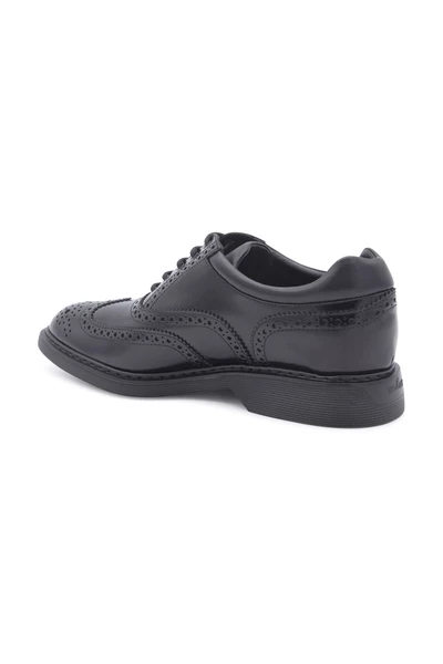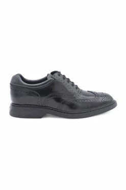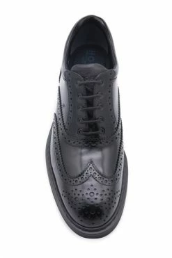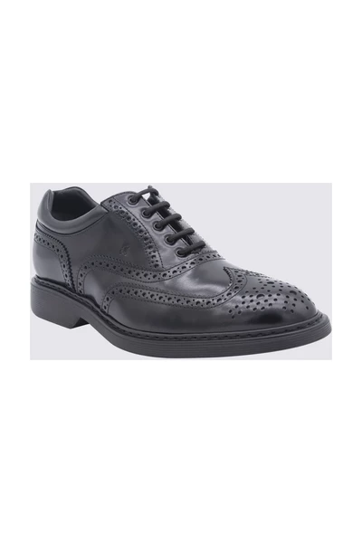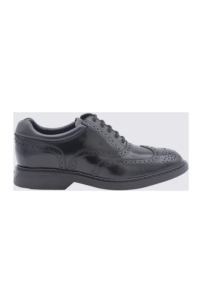 Hogan Scarpe Basse Nero Black Leather Oxford-schoenen van Hogan met logo-geëmbossing tong, brogue detaillering, veterbevestiging vooraan, ronde teen, merkbelang en rubberen zool.