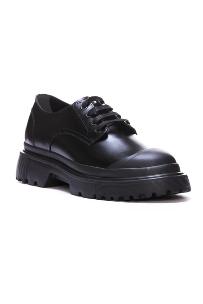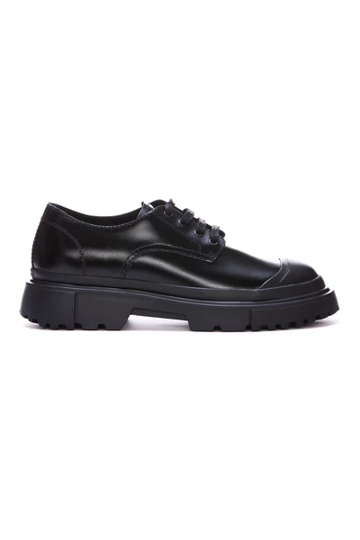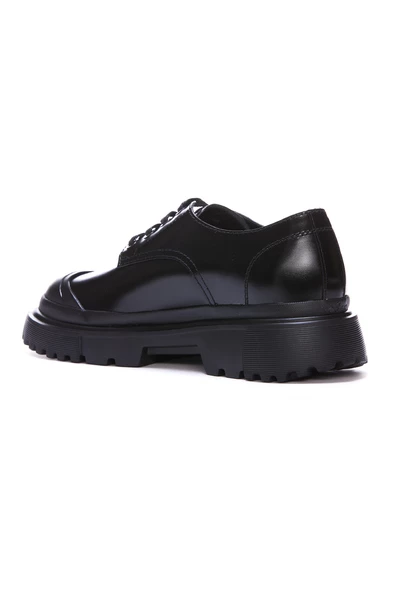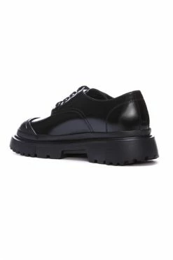 Deze heren veterschoenen hebben een zool met lugs en milleraies details. Het profiel is ontworpen voor optimale grip en heeft externe H-vormige blokken. De militair geïnspireerde stijl, benadrukt door blootliggende stiksels, wordt in evenwicht gebracht door de stedelijke smaak van de lijnen. De prominente teen en hiel voegen karakter en driedimensionaliteit toe aan het abrasivato lederen bovenwerk. De memory foam binnenzool garandeert een zachte en comfortabele pasvorm.