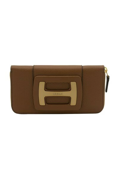 Hogan Portafogli bruine lederen portemonnee van Hogan met kaartslots, ritssluiting muntenpocket, maxi h met logo en zip-sluiting aan de drie zijden.