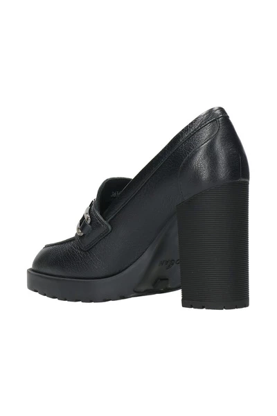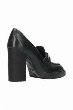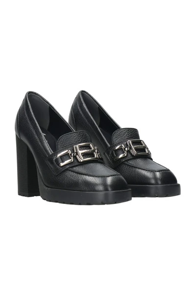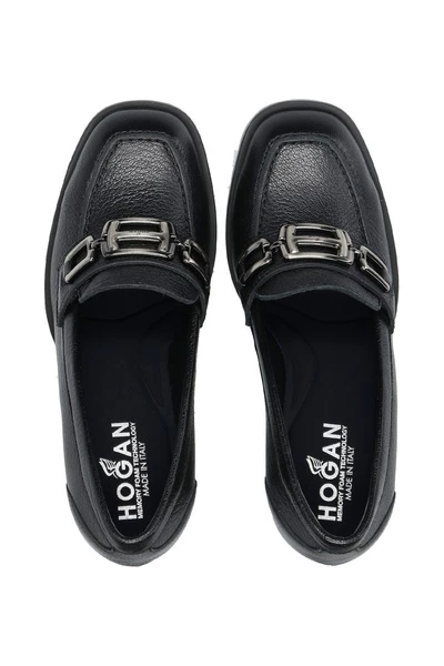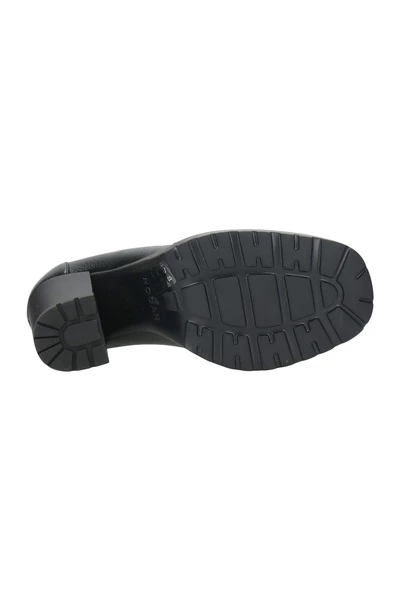 Hogan met hiel zwart – gemaakt in Italië – leer bovenste – geheugenschuim voetbed – hielhoogte 8,5 cm – rubberen zool – stofzak inbegrepen – Aangepast metaal h -accessoire