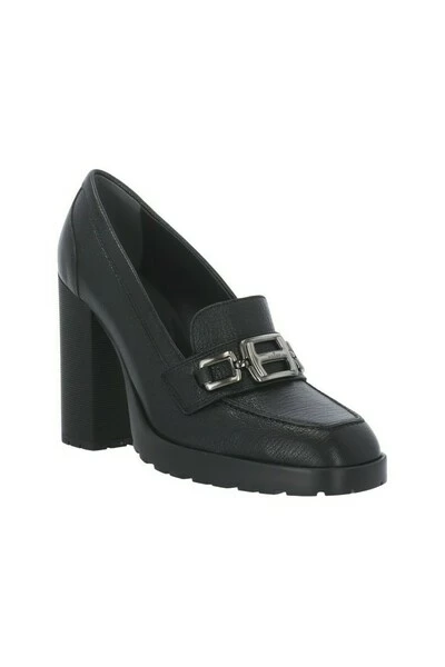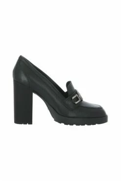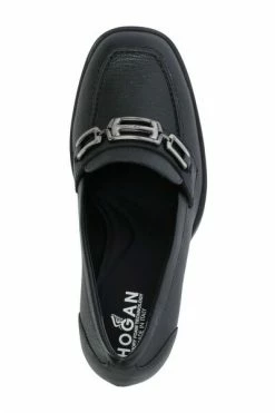 Hogan met hiel zwart – zwarte Hogan kiezelleren hielloafers voor vrouw – kwadraat teen – gepersonaliseerd h metaalaccessoire – traagschuim fussbet – hiel (8,5 cm)