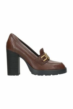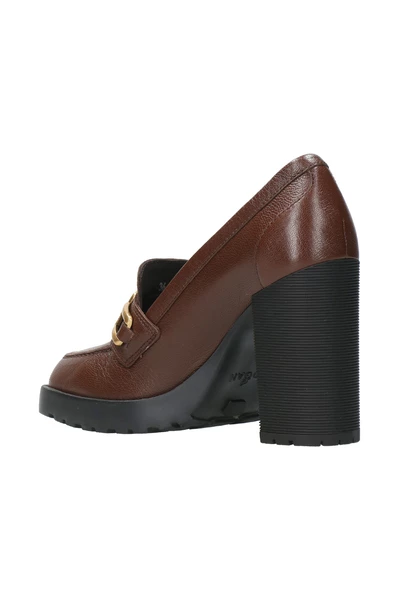 Hogan met hielbruin – leer bovenste – hielhoogte 8,5 cm – geheugenschuim voetbed – rubberen zool – aangepast metaal h -accessoire – gemaakt in Italië