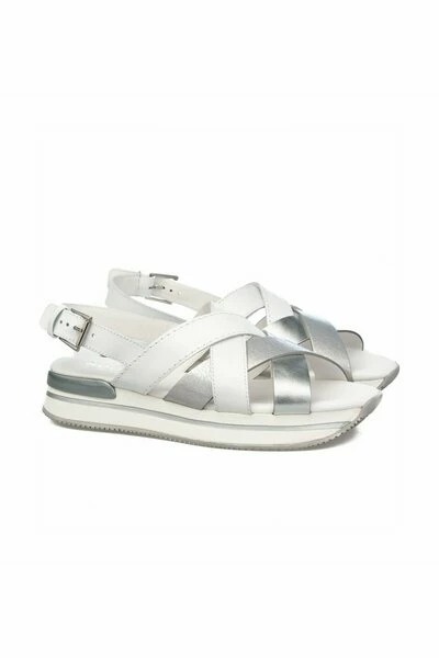 COD. HXW2570DK80PDR0906 gemaakt van een mix van verschillende texturen, wol uw silhouet met elke outfit, het toevoegen van een sportieve chique noot aan uw look. Dit sandaal met klemmen is een echte pass-partout voor de zomer. Gemaakt van een mix van verschillende texturen, warg je je silhouet met elke outfit. H222 Sandaal Hogan Donna Made in Italy Lederen Bovenste gemetallized Lederen Details en Lederen Craquel Effect Heel Strap Ultra-Light Sole Eva Totale hoogte 5cm Zorg- en onderhoudsindicaties Inclusief Fabric Case Inclusief wit, zilver