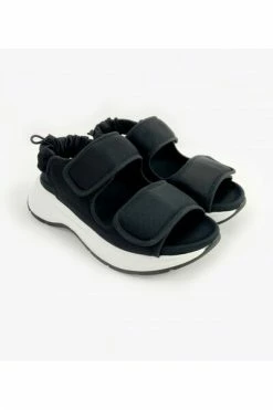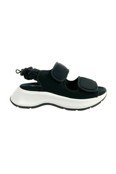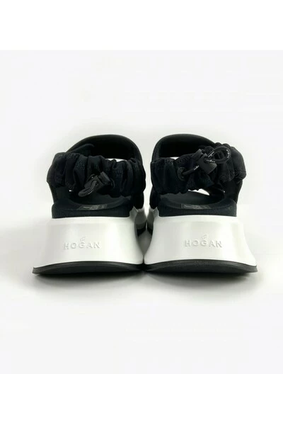 Hogan sneakers. Zwarte sandalen met witte rubberen platform zool. Dubbele sluiting van klittenband en verstelbaar achter de hiel.